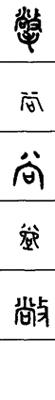从上到下依次是小篆、甲骨文、金文、古玺及战国文字、缪篆及汉代文字、鸟虫篆。