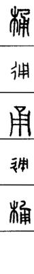 从上到下依次是小篆、甲骨文、金文、古玺及战国文字、缪篆及汉代文字、鸟虫篆。