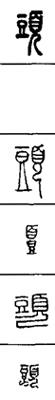 从上到下依次是小篆、甲骨文、金文、古玺及战国文字、缪篆及汉代文字、鸟虫篆。