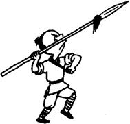 [投枪]可以投掷出去杀伤敌人或野兽的标枪。