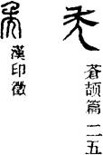 从上到下依次是小篆、甲骨文、金文、古玺及战国文字、缪篆及汉代文字、鸟虫篆。