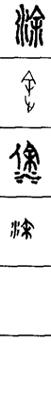 从上到下依次是小篆、甲骨文、金文、古玺及战国文字、缪篆及汉代文字、鸟虫篆。