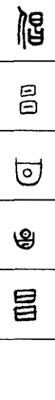 从上到下依次是小篆、甲骨文、金文、古玺及战国文字、缪篆及汉代文字、鸟虫篆。