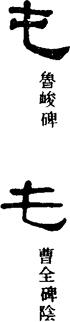 从上到下依次是小篆、甲骨文、金文、古玺及战国文字、缪篆及汉代文字、鸟虫篆。
