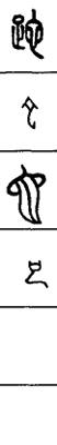 从上到下依次是小篆、甲骨文、金文、古玺及战国文字、缪篆及汉代文字、鸟虫篆。