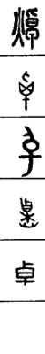 ㈡(zhuō卓)①明显。②照耀。③(zhuó灼)同“灼”。烧灼。