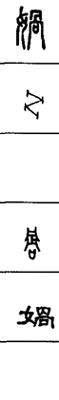 从上到下依次是小篆、甲骨文、金文、古玺及战国文字、缪篆及汉代文字、鸟虫篆。