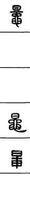 从上到下依次是小篆、甲骨文、金文、古玺及战国文字、缪篆及汉代文字、鸟虫篆。