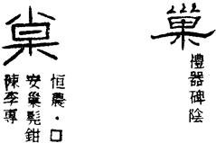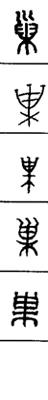 从上到下依次是小篆、甲骨文、金文、古玺及战国文字、缪篆及汉代文字、鸟虫篆。