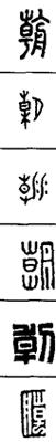 从上到下依次是小篆、甲骨文、金文、古玺及战国文字、缪篆及汉代文字、鸟虫篆。
