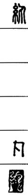 从上到下依次是小篆、甲骨文、金文、古玺及战国文字、缪篆及汉代文字、鸟虫篆。