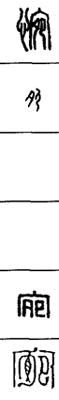 从上到下依次是小篆、甲骨文、金文、古玺及战国文字、缪篆及汉代文字、鸟虫篆。