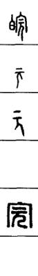 从上到下依次是小篆、甲骨文、金文、古玺及战国文字、缪篆及汉代文字、鸟虫篆。