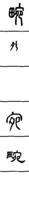 从上到下依次是小篆、甲骨文、金文、古玺及战国文字、缪篆及汉代文字、鸟虫篆。