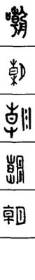 从上到下依次是小篆、甲骨文、金文、古玺及战国文字、缪篆及汉代文字、鸟虫篆。
