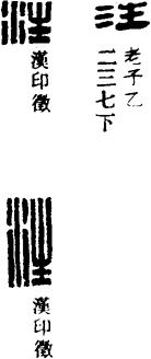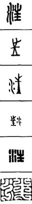 从上到下依次是小篆、甲骨文、金文、古玺及战国文字、缪篆及汉代文字、鸟虫篆。