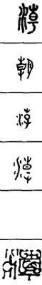 从上到下依次是小篆、甲骨文、金文、古玺及战国文字、缪篆及汉代文字、鸟虫篆。