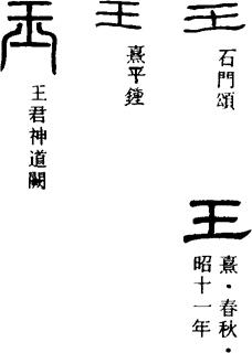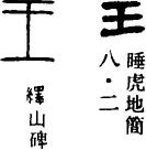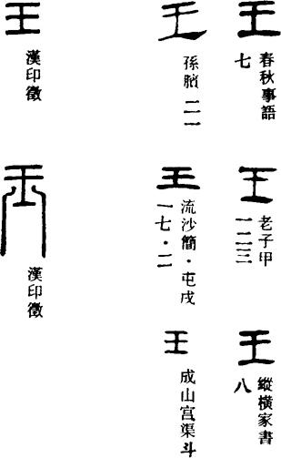 〈辨〉王字甲金文象大斧的形状,为象形字。斧为武器,用以征服天下,引以称征服天下的人、古代的最高统治者。篆书字形讹变,楷书作王。