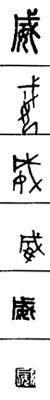 从上到下依次是小篆、甲骨文、金文、古玺及战国文字、缪篆及汉代文字、鸟虫篆。