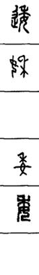 从上到下依次是小篆、甲骨文、金文、古玺及战国文字、缪篆及汉代文字、鸟虫篆。