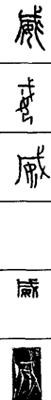 从上到下依次是小篆、甲骨文、金文、古玺及战国文字、缪篆及汉代文字、鸟虫篆。