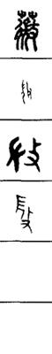 从上到下依次是小篆、甲骨文、金文、古玺及战国文字、缪篆及汉代文字、鸟虫篆。