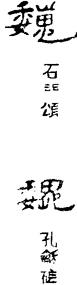 巍《説文》訓“高也”。魏不見於《説文》,《玉篇》:“魏,象魏,闕也。”然古通作巍,銀雀山竹簡《孫子兵法·吴問》:“韓、巍制田,以百步為庱(畹),以二百步為畛,而伍税〔之〕。”漢有“巍其侯”銅盆,即魏其侯家物,《史記》有《魏其武安侯列傳》。又漢印有“巍其邑丞”。石門頌有“南鄭巍整”,姓氏字後世亦省作魏。按《説文》巍字條下段玉裁注云:“高者必大,故《論語》注曰:‘巍巍,高大之稱也。’後人省山作魏,分别其義與音。”《史記·晉世家》:“萬,盈數也;魏,大名也。”集解引服虔曰:“魏喻巍。巍,高大也。”《孟子·盡心下》:“勿視其魏魏然。”宋孫奭孟子音義:“魏,丁云當作巍。”