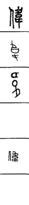 从上到下依次是小篆、甲骨文、金文、古玺及战国文字、缪篆及汉代文字、鸟虫篆。