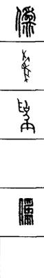 从上到下依次是小篆、甲骨文、金文、古玺及战国文字、缪篆及汉代文字、鸟虫篆。