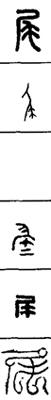 【说明】“尾”为会意字,像人屁股后有长羽毛之类的饰物。参附录三。
