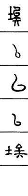 从上到下依次是小篆、甲骨文、金文、古玺及战国文字、缪篆及汉代文字、鸟虫篆。