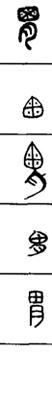 从上到下依次是小篆、甲骨文、金文、古玺及战国文字、缪篆及汉代文字、鸟虫篆。