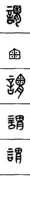 从上到下依次是小篆、甲骨文、金文、古玺及战国文字、缪篆及汉代文字、鸟虫篆。