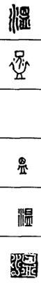 从上到下依次是小篆、甲骨文、金文、古玺及战国文字、缪篆及汉代文字、鸟虫篆。