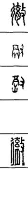 从上到下依次是小篆、甲骨文、金文、古玺及战国文字、缪篆及汉代文字、鸟虫篆。