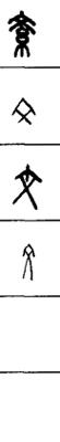 从上到下依次是小篆、甲骨文、金文、古玺及战国文字、缪篆及汉代文字、鸟虫篆。