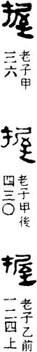 馬王堆帛書《六十四卦·卒(萃)》初六:“一屋于(為)芺(笑),勿血(恤),往无咎。”通行本《易》屋作握。按釋文:“鄭玄云:握當讀為‘夫三為屋’之屋。蜀才同。”是鄭氏以屋為正字。