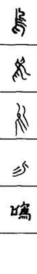 从上到下依次是小篆、甲骨文、金文、古玺及战国文字、缪篆及汉代文字、鸟虫篆。