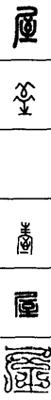 从上到下依次是小篆、甲骨文、金文、古玺及战国文字、缪篆及汉代文字、鸟虫篆。