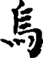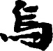 金文的乌字,象一只大嘴朝天、有眼无睛的鸟形。乌为鸟名,指乌鸦。由于乌鸦性喜夜啼,所以特别突出它的嘴形;又因为它全身黑色,与眼珠的黑点浑同一色,故只见眼白不见睛黑,所以金文的乌字形有眼无睛。此外,乌又是黑色的代称。