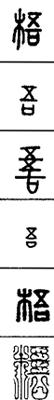 从上到下依次是小篆、甲骨文、金文、古玺及战国文字、缪篆及汉代文字、鸟虫篆。