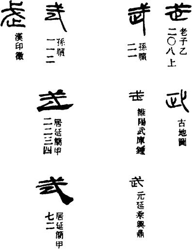 【说明】“武”为会意字。从止,从戈。参附录三。