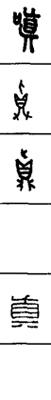 从上到下依次是小篆、甲骨文、金文、古玺及战国文字、缪篆及汉代文字、鸟虫篆。