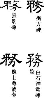 wù 《广韵》:事务也。又强也,蘧也,趣也。 亡遇切遇合三去遇微