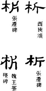 【说明】“析”为会意字,从木从斤,像用斧斤劈开木头。参附录三。
