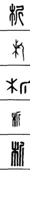 从上到下依次是小篆、甲骨文、金文、古玺及战国文字、缪篆及汉代文字、鸟虫篆。