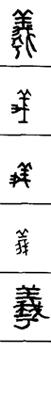 从上到下依次是小篆、甲骨文、金文、古玺及战国文字、缪篆及汉代文字、鸟虫篆。