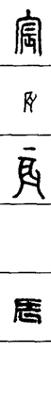 从上到下依次是小篆、甲骨文、金文、古玺及战国文字、缪篆及汉代文字、鸟虫篆。