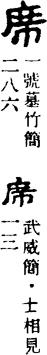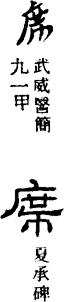 〈辨〉席字金文从巾石省声,巾表示它如巾为方形。六国古文从因石省声,因即茵,详因字下,设于席上,与席为同类。篆书作从巾庶省声。异体蓆,更从艸为形符。今并作席。