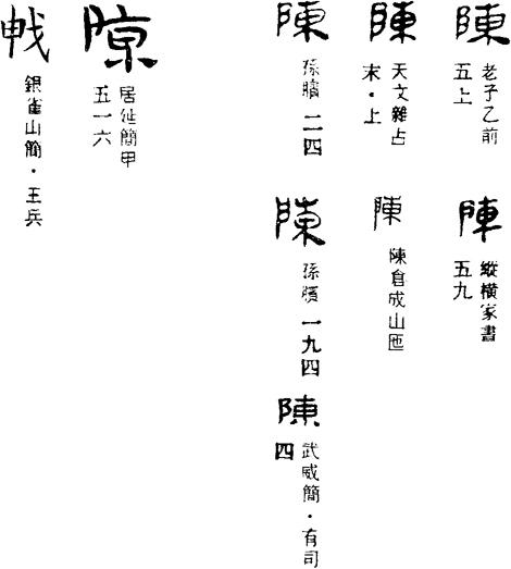(一)chén 《广韵》:陈列也,张也,众也,布也,故也。……又姓。 直珍切 臻开三平真澄